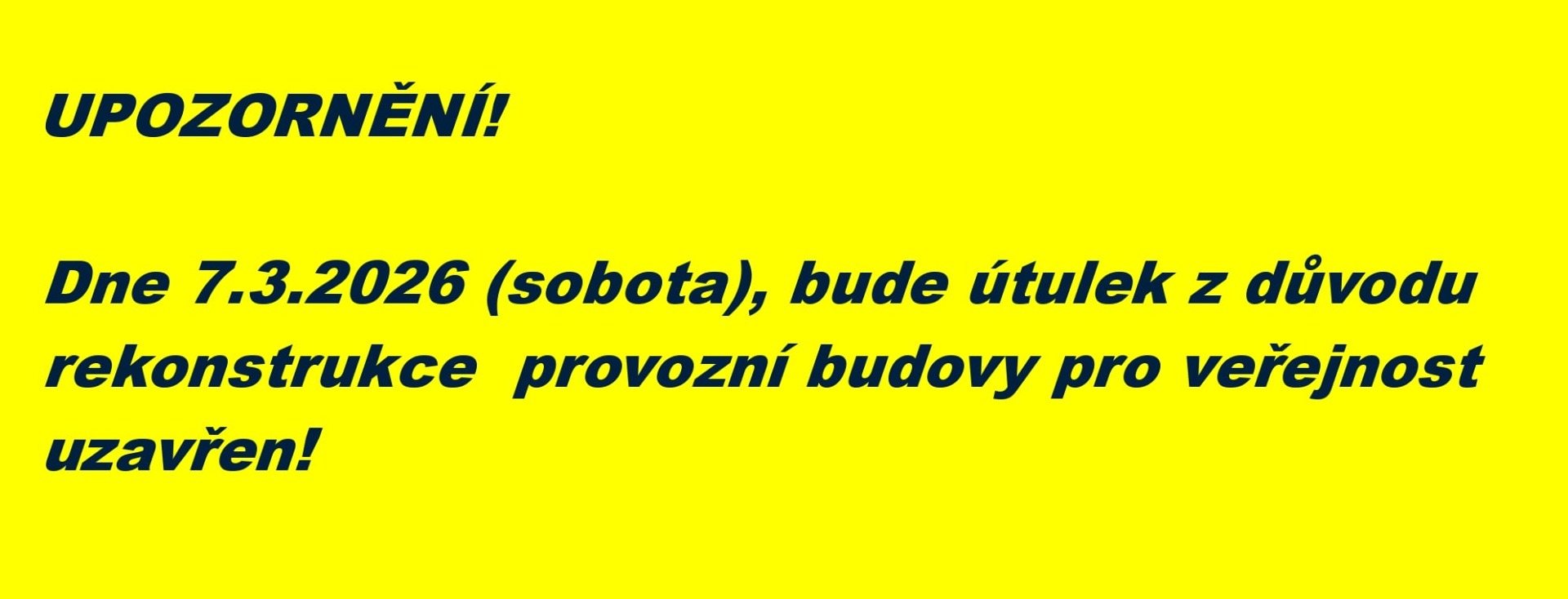Vzhledem k plánované rozsáhlé rekonstrukci prostor a chovatelského zařízeni v provozní budově městského útulku,