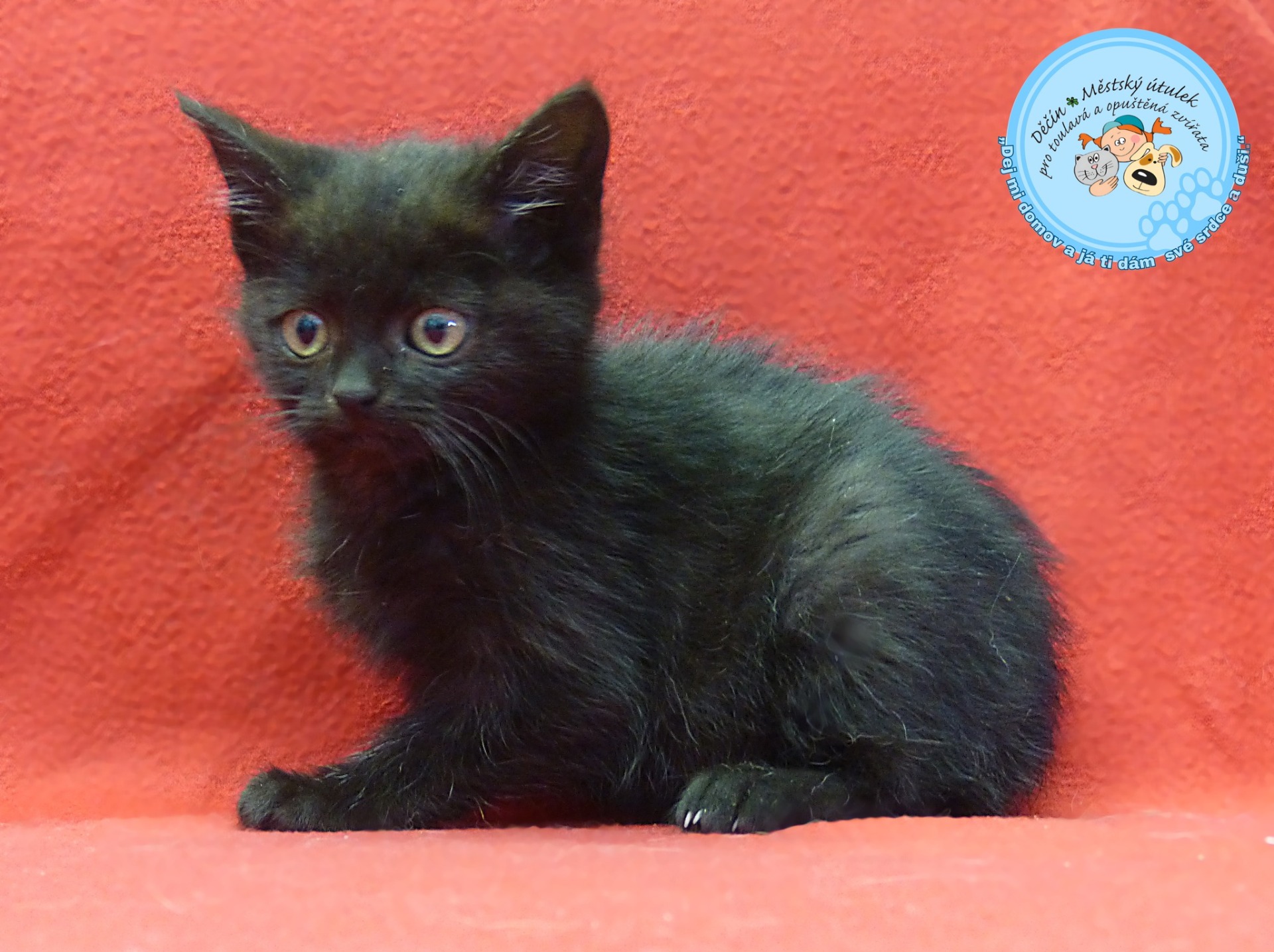 je asi 8 týdnů stará kočička, odchycená 11.10.2025 v Benešově nad Ploučnicí. Je trošku plašší, ale dá se vzít bez problémů do ruky. Potřebuje trpělivého majitele, který ji vymazlí. Je čistotná, vhodná do bytu.