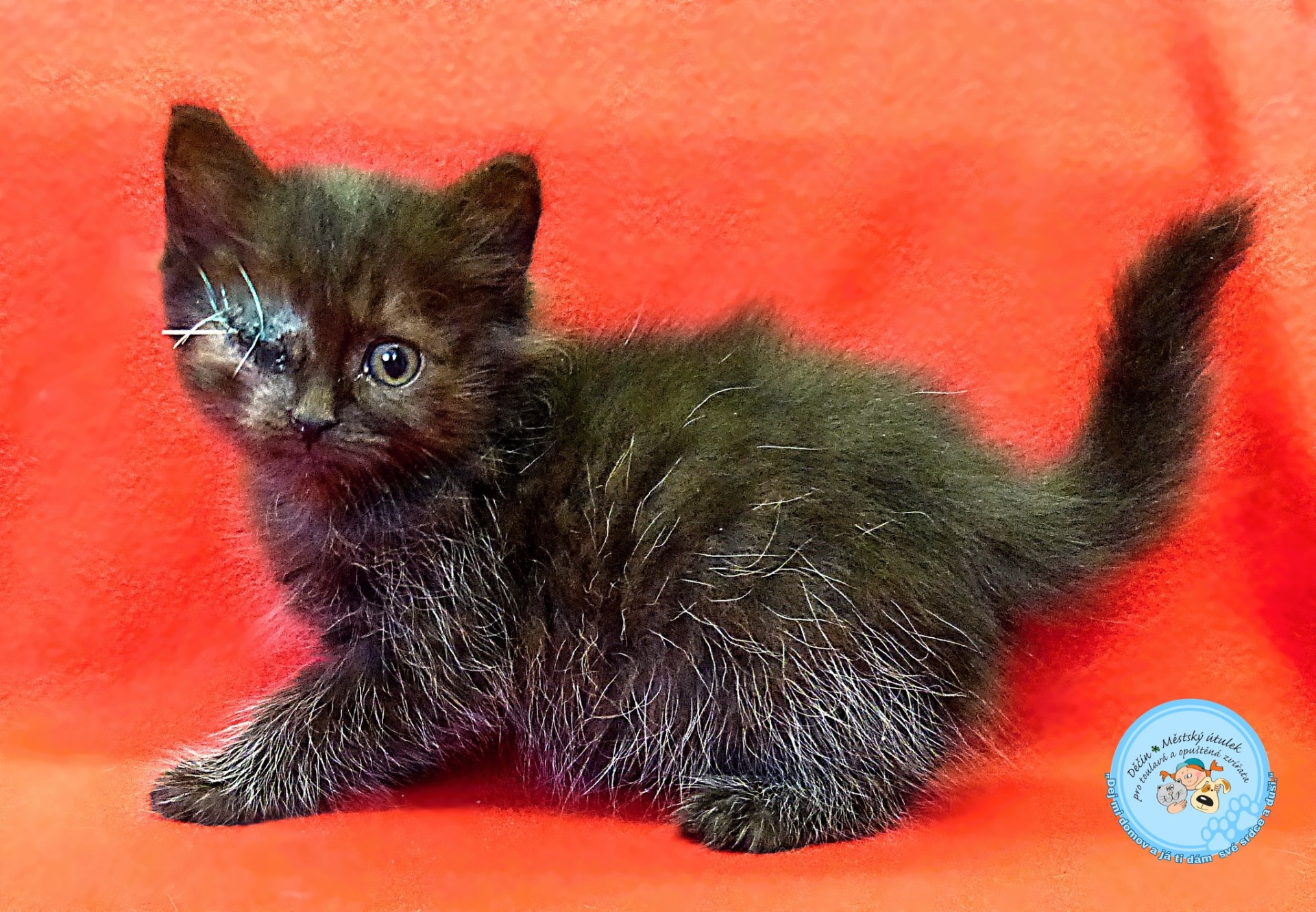 je asi 8 týdnů stará kočička, která byla nalezena se sestřičkou Miou 10.9.2025 v České Kamenici. U obou byla pěkná rýma, takže byla ihned započata aktivní léčba. Bohužel Zita měla nepěkně i poškozené oko, které se bohužel nedalo již zachránit, musela proto podstoupit operaci. Čeká jí už jen vyndání stehů a může odejít do nového domova. Vůbec jí neovlivní, že oko nemá. Je milá, akční, mazlivá, vhodná pouze do bytu.