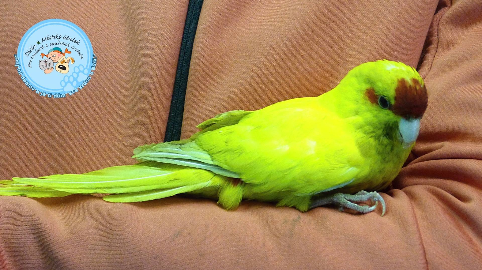Kakariki rudočelý, nalezen 11.10.2025 v Benešově nad Ploučnicí. Hledáme majitele.