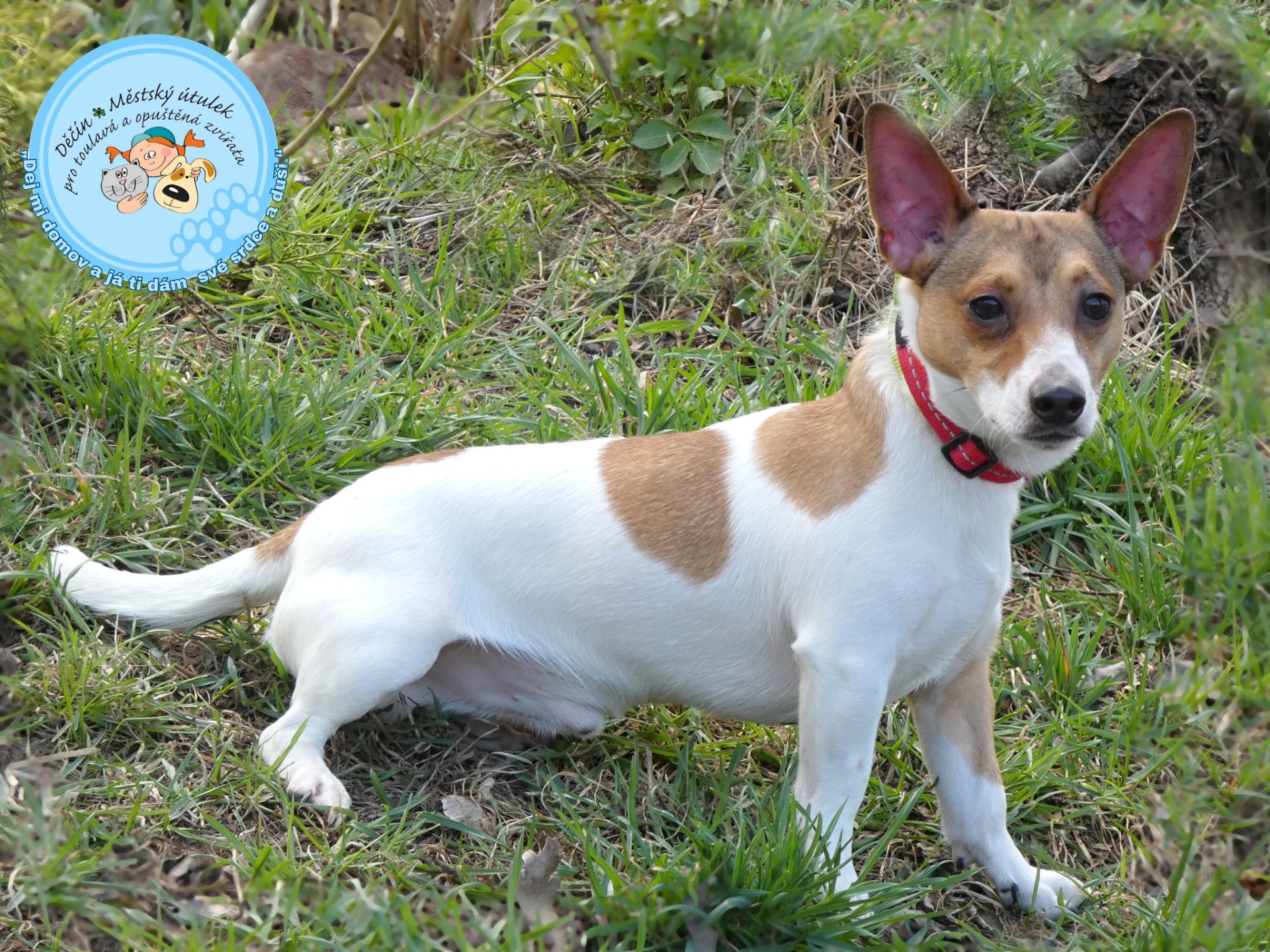 je asi rok a půl starý kříženeček jack russell teriéra, přijatý 27.3.2026. Na první okamžik je k cizím opatrný, ale pak je v pohodě. Výšku má 25 cm a váží necelých 7 kg. Je to temperamentní a akční pes, vhodný k někomu, kdo se mu bude věnovat po všech stránkách. Zatím v karanténě. Vážné zájemce prosíme o pročtení adopčních podmínek.