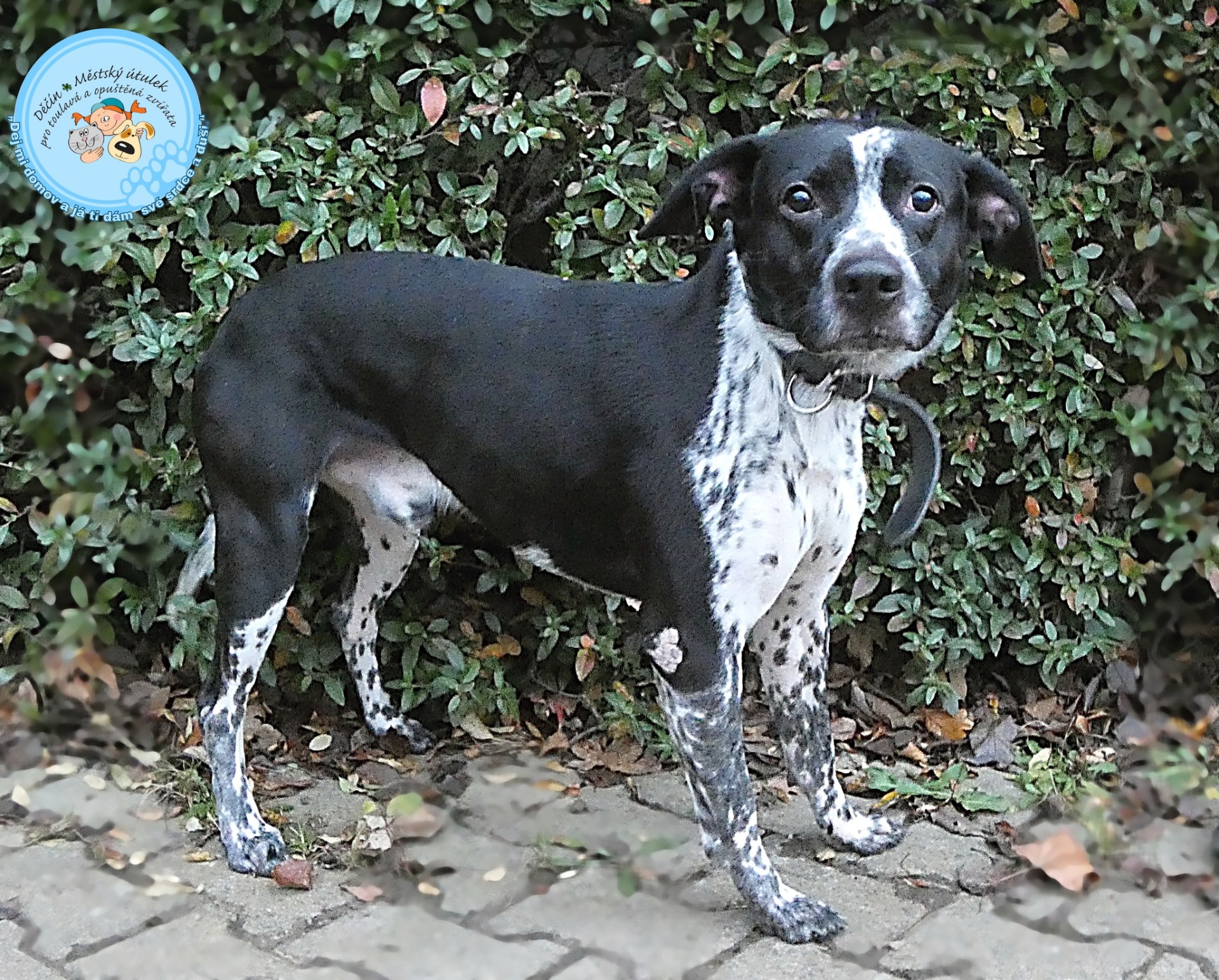 je drobná fenka křížence, která našemu týmu dala zabrat. O odchyt Jůlinky, která se bezprizorně několik dní pohybovala na polích a loukách v Brtníkách – Starých Křečanech, jsme byli požádáni 14.11.2025 panem starostou. Jůlinka k sobě nikoho nepustila, pokud se někdo přiblížil, s hlasitým štěkotem na dotyčného útočila a razanci zvýšila, pokud se někdo pohnul. Byla rychlá jako blesk, a chovala se jako kobra. Byla rychlá, do sklopce ani za maso nevlezla, při pohybu, použít odchytovou síť, ihned zdrhla dostatečně daleko a ječela na nás z dálky. Několik hodin v chladu a větru jsme se snažili, ale Jůlinka s námi nemluvila. Dohodli jsme, ať jí nikdo nekrmí, a v neděli přijedeme znovu. V neděli dopoledne se opakovalo to samé, Jůlinku bašta moc netlačila, z dálky na nás pořvávala. Použili jsme do žrádla pastu Sedalin a čekali, zda jí pasta trochu zpomalí. Díky tomu, že jí přes upozornění dobráci opět nakrmili, trochu si dloubla a třičtvrtě dávky tam nechala. Na našeho malého maskota Piškota, kterého jsme na fenku vzali jako návnadu, se regulérně vyprdla, ani pes jí nezajímal. Takže jsme tam zas ve větru a zimě strávili skoro 2 hodiny. Poté přišel šok. Jůlinka najednou z ničeho nic regulérně přišla, a opřela se o naše auto. Jára otevřel a řekl jí " tak pojď", a ta malá potvůrka si normálně vlezla do auta a začala se s námi mazlit, jak se starý kamarády. To jsme nepochopili, tohle se nám ještě nestalo. Dostala vodítko pro jistotu, a celou cestu zpět na útulek prospala v autě. V útulku je s námi největší kámoška, každého vítá a pusinkuje. Asi zjistila, že u nás bude líp než venku v polích. Jůlinka má v kohoutku do 30 cm a váží 6 kg, čipovaná nebyla. Více po veterině..
